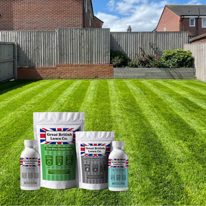 Our Ultimate Lawn Kit includes premium Gro-Pro Grass Seed, Fresh Start Lawn Food, Iron Plus Moss Killer and Bio Boost, offering complete care for lush, green lawn transformations across the seasons.